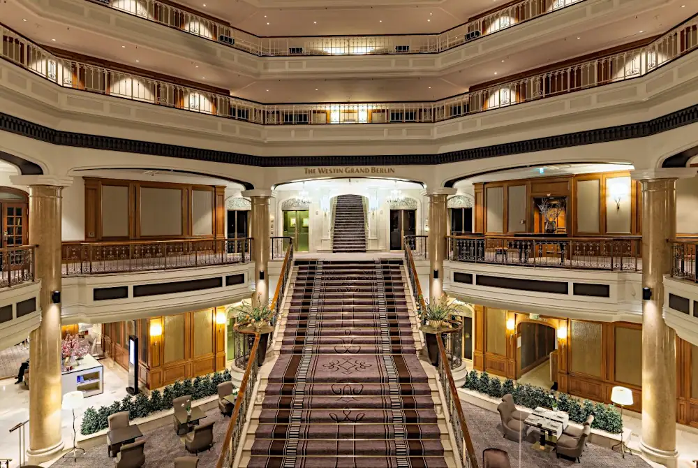 The Westin Grand Hotel liegt ideal an der Ecke Unter den Linden und Friedrichstraße mitten im historischen Zentrum Berlins und in unmittelbarer Nähe zum Regierungsviertel und wirtschaftlich bedeutenden Unternehmen. Zu Fuß erreichen Sie zudem in wenigen Minuten bekannte Sehenswürdigkeiten. Der italienisch anmutende Gendarmenmarkt, die berühmte Museumsinsel, das Neue Schloss mit dem Humboldt Forum, der Berliner Dom, der Reichstag, das Brandenburger Tor oder der Checkpoint Charlie: Viele Berliner Highlights erwarten Sie ganz in der Nähe. Opernhäuser, das angrenzende Theaterviertel East End und zahlreiche kulinarische Angebote sind bequem zu Fuß erreichbar. Für einen Spaziergang im Grünen empfiehlt sich der Berliner Tiergarten mit Siegessäule und von dort grandiosem Blick auf Berlin. Vielleicht haben Sie auch Lust auf einen Ruderausflug auf dem Neuen See? Die City-West mit dem berühmten Kaufhaus KaDeWe, Kudamm, Zoo und Aquarium erreicht man ebenfalls schnell.